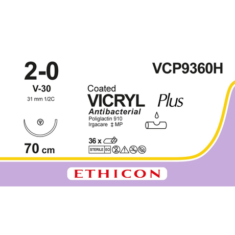 VCP9360H - Vicryl Plus 2-0 Braided Violet 70cm Tapercut 31mm