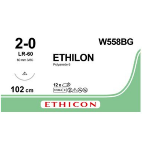 W558BG - ETHILON BLACK 2/0 (100CM) 60MM ⅜ CIRCLE CONVENTIONAL CUTTING NEEDLE