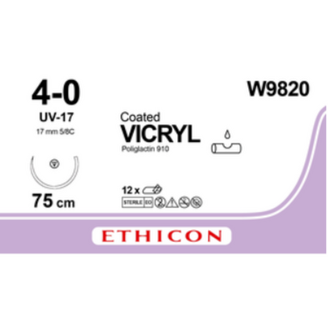 W9820 - VICRYL UNDYED 4/0 (75CM) 17MM ⅝ CIRCLE TAPERCUT P NEEDLE
