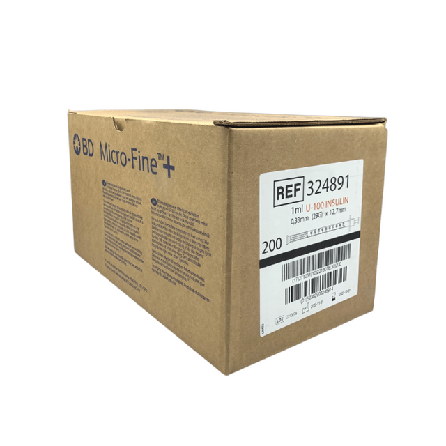 The Micro-Fine™+ Insulin Syringe is a disposable hypodermic syringe offering a more comfortable and convenient method of injecting insulin. Comes with an attached needle. 200 per box.