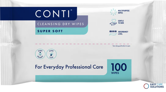 Conti Soft are very popular, great value dry wipes making them the first choice for carers with their soft "textile" feel. Conti Soft Large Dry Wipes are ideal for your everyday cleansing needs and suitable for sensitive skin.