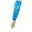 Polyethylene Protective Arm Coverings in blue coloration. Supplied in quantities of 100 units per package. Designed for single-use barrier applications in controlled environments.