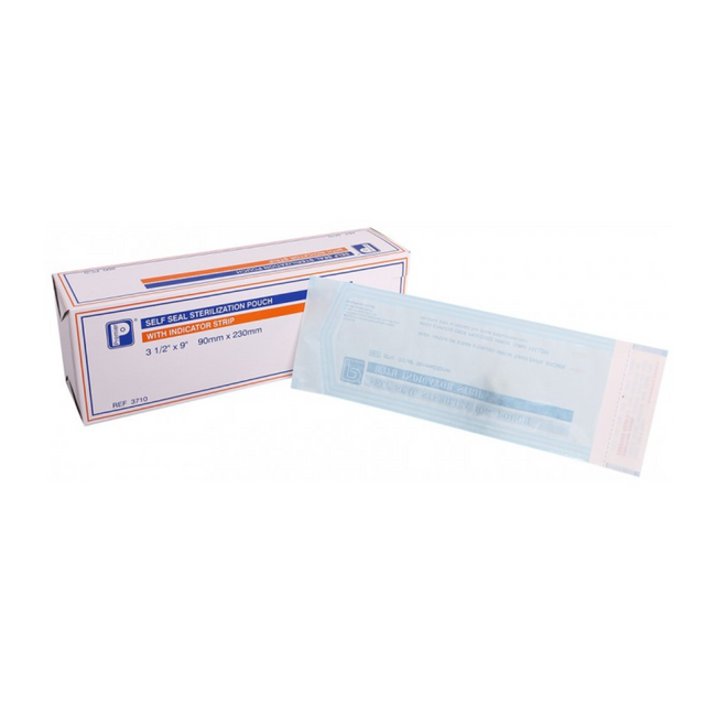 These self-sealing sterilisation pouches feature a double adhesive seal for added safety of the contents. A WHITE indicator strip on each pouch clearly confirms the sterility of the instrument inside by changing to BROWN. They are easy to use, and the pouch can be sealed by hand. The clearview front panel makes it easy to identify what is inside. The pouch eliminates the need for expensive sealing equipment or time-consuming wrapping and packing techniques. The clear front panel is backed with medical grade paper, providing good wet strength properties for steam sterilisation. Suitable for use with Ethylene Oxide gas or steam sterilisers. 200/Box.