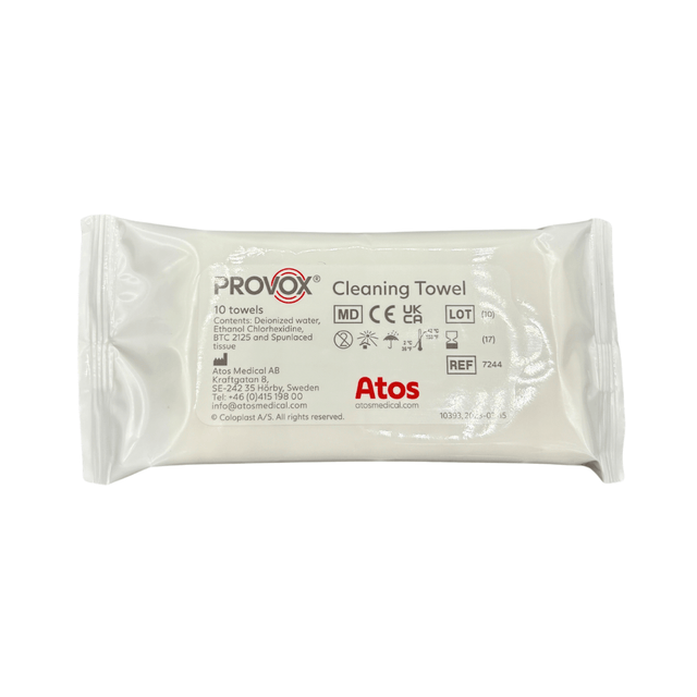 Provox Cleaning Towel's are used to clean the skin before the application of adhesive to remove oils in preparation for a secure grip.