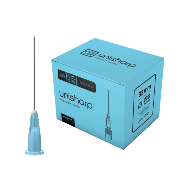 Unisharp 32mm 23g Blue Hypodermic Needles