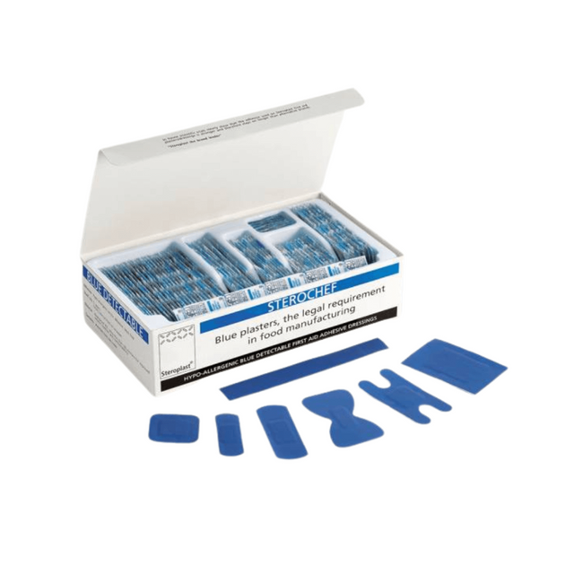 The law requires that food processors and anyone handling food must use blue dressings. With a medical grade, high-tack adhesive, these dressings are better than the rest at staying put and not entering the food chain, which is extremely costly from the point of view of a establishment's reputation, and also halts the production line.