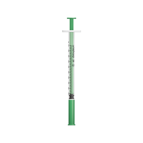 Unisharp 1ml 29G 0.5" fixed needle syringe: green