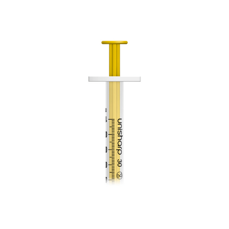 Unisharp 1ml 30G 0.5" fixed needle syringe: Gold