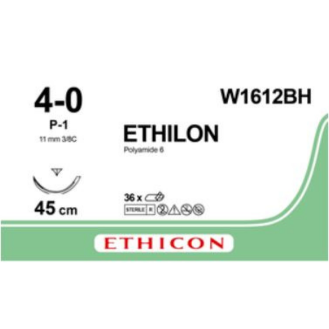 W1612BH - ETHILON BLACK 4/0 (45cm) with 11mm ⅜ CIRCLE REVERSE CUTTING P NEEDLE is backordered and will ship as soon as it is back in stock.