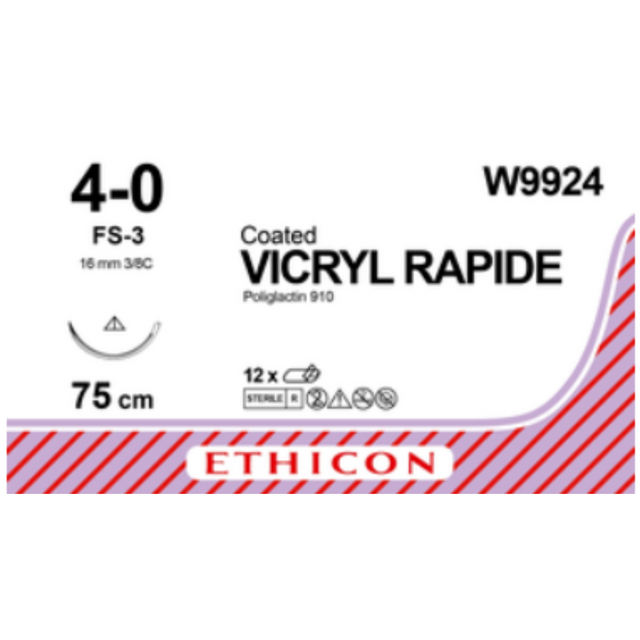 W9924 - VICRYL RAPIDE 4/0 (75CM) 16MM ⅜ CIRCLE CONVENTIONAL CUTTING P NEEDLE is backordered and will ship as soon as it is back in stock.