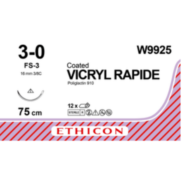 W9925 - VICRYL RAPIDE 3.0 (45CM) 16MM ⅜ CIRCLE CONVENTIONAL CUTTING NEEDLE is backordered and will ship as soon as it is back in stock.