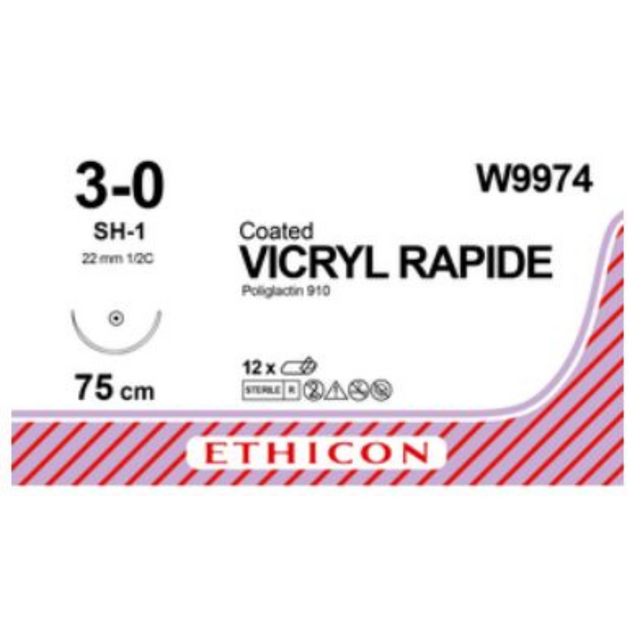 W9974 - VICRYL RAPIDE 3/0 (75CM) 22MM ½ CIRCLE TAPER POINT PLUS NEEDLE is backordered and will ship as soon as it is back in stock.