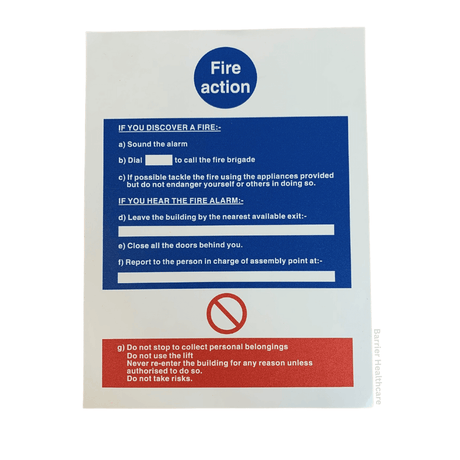Fire Action Sign 15 x 20cm Adhesive Sticker