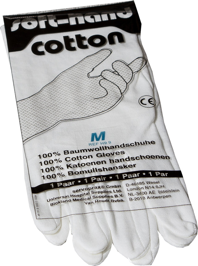Pure cotton glove • Hypoallergenic protection for the hands • Air permeable • Hard-wearing thanks to permanently sown seams • Anatomical fit